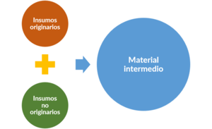 Se entiende por Material Intermedio de Fabricación Propia, aquel material que se obtiene en un primer proceso productivo, mismo que posteriormente se vuelve a mezclar con otros insumos, partes y componentes, tanto originarios como no originarios para elaborar el bien final.